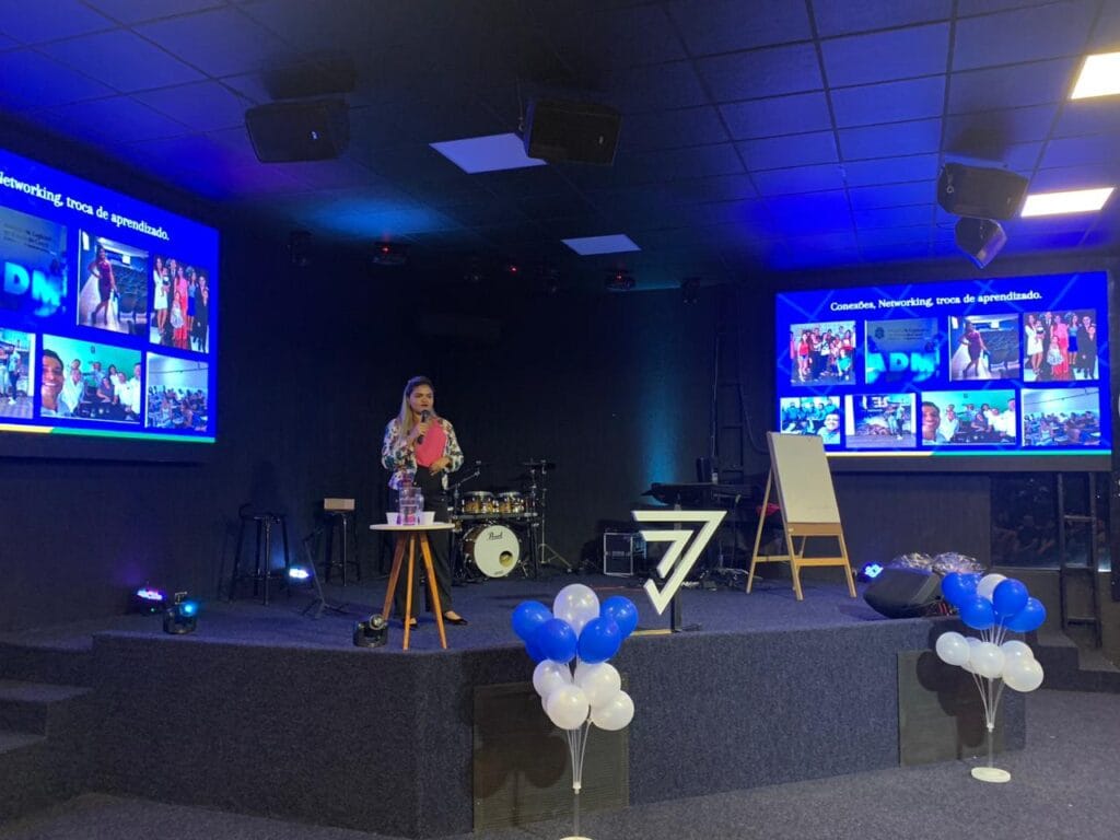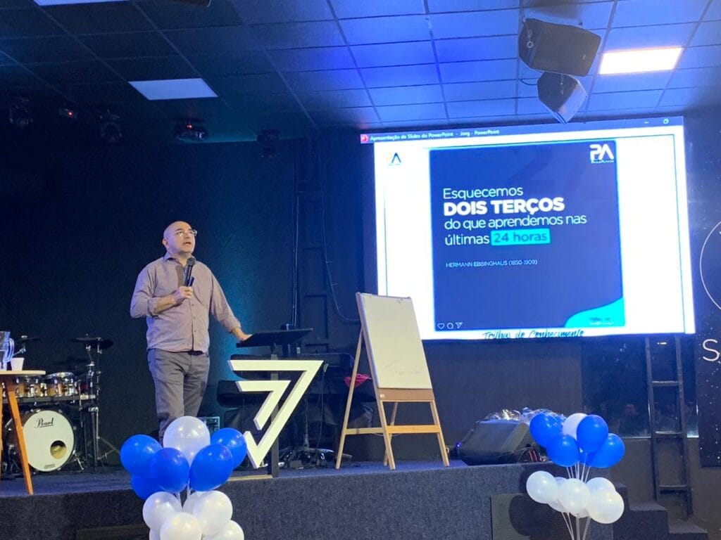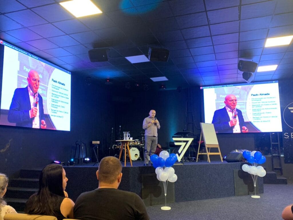 Em seguida, o Dr. Paulo Almada assumiu o palco, enfatizando o tema “Mentes em Ação”. Ele cativou a audiência com suas palavras inspiradoras sobre como ação e comprometimento são essenciais para alcançar o sucesso.
