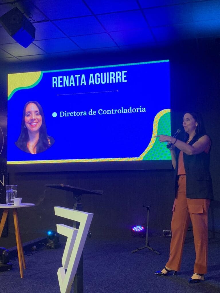 Renata Aguirre, atualmente Diretora de Controladoria, foi a primeira a compartilhar suas experiências. Ela discutiu os desafios que enfrentou ao longo de sua carreira e como superou cada obstáculo com determinação e perseverança. Sua jornada é uma prova de que a dedicação e a paixão podem levar a conquistas incríveis.